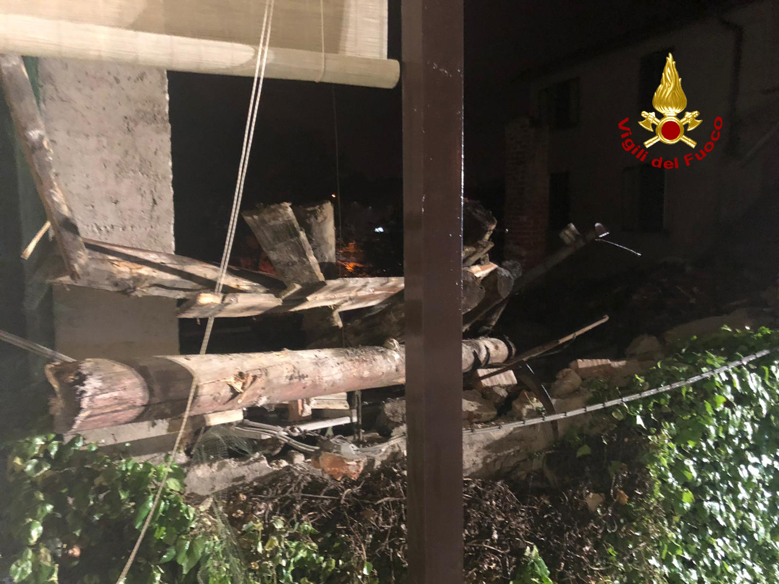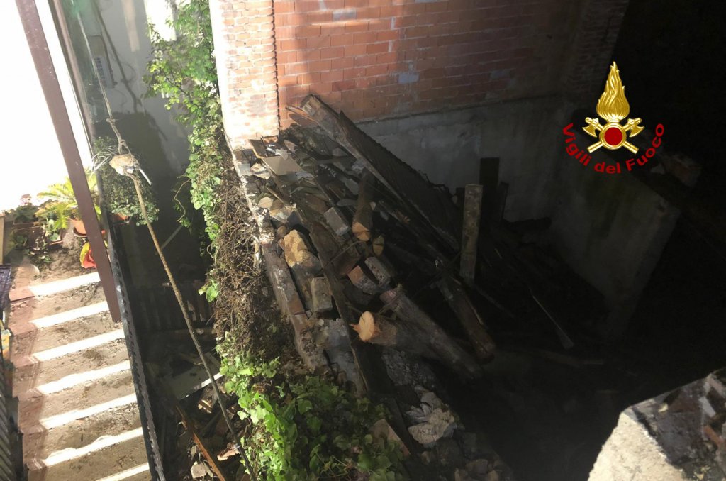 Alto Vicentino – Muro crolla nella notte: pompieri al lavoro
