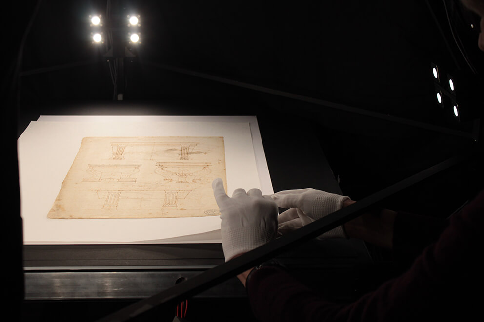 Nell’ambito dell’importante progetto è in corso proprio in questi giorni al Palladio Museum la prima fase di acquisizione digitale dei disegni originali del celebre architetto, un’operazione che avviene secondo una innovativa metodologia di acquisizione tridimensionale messa a punto dal dipartimento di Architettura dell’Alma Mater Studiorum dell’Università di Bologna in collaborazione con l’Università degli Studi di Urbino Carlo Bo. L’équipe di esperti delle due Università – guidati dal prof. Marco Gaiani dell’Università di Bologna – sta lavorando fianco a fianco con lo staff del Centro palladiano che, sotto la supervisione della Soprintendenza e in coordinamento con i Musei Civici, vigila tutti i passaggi che coinvolgono la movimentazione dei preziosi e delicatissimi materiali.