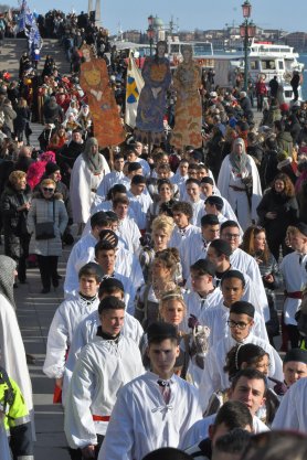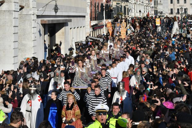 La Festa è anche un momento unico per ammirare i costumi della tradizione veneziana. Un corteo accompagnato da circa 450 persone dei gruppi storici in costume del C.E.R.S. e dalle associazioni Amici del Carnevale di Venezia e Associazione Internazionale per il Carnevale di Venezia. A comporlo: Accademia Cangrande della Scala di Bovolone, Sbandieratori Alfieri della Regina di Piovene Rocchette, Este Medievale, Cavalieri del Drago, Schola Tamburi Storici di Conegliano, Compagnia Città del Grifo di Arzignano, Serenisimo Tribunal de l’Inquisithion di Venezia, Palio Arcella, Corporazione Artigiani Medievali, Associazione Giano, Compagnia di S. Vitale, Gruppo Storico di Servigliano, Confraternita del Leone, Academia Sodalitas Ecelinorum di San Zenone degli Ezzelini, Sbandieratori Gli Erranti, Cavalieri della Torre Antica di Padova, Commenda Maladense, Confraternita del Leone di Brescia e altri provenienti da Germania, Belgio, Olanda e Svizzera. Ospiti d’Onore: I Principini del Carnevale di Bonn. Quest’anno, sempre dalla Germania, parteciperà anche una delegazione di studenti dell’Università Goethe di Francoforte, in abiti storici. Il coordinamento è a cura del presidente del Cers Massimo Andreoli.