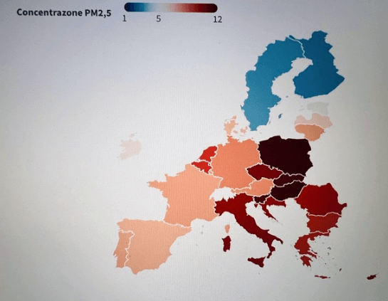 I Paesi più inquinati, con concentrazioni tra gli 11 ed i 12 microgrammi di PM 2,5 sono risultati la Slovenia, la Slovacchia, l’Ungheria e la Polonia.