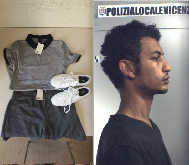 Era uscito da un negozio di corso Palladio con una maglietta grigia, un paio di pantaloncini in tinta e un paio di scarpe da ginnastica bianche senza pagare, come pare abbia già fatto altre volte. Una pattuglia della polizia locale lo ha rintracciato poco dopo al Giardino Salvi con la refurtiva e lo ha tratto in arresto.