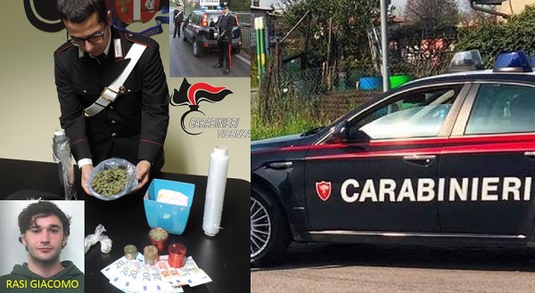 Visti gli esiti dell’attività si procedeva quindi all’arresto in flagranza di Giacomo Rasi, 23enne, residente a Crespadoro, celibe, studente, pregiudicato, il quale, su disposizione della Procura della Repubblica presso il Tribunale di Vicenza, veniva tradotto presso la propria abitazione agli arresti domiciliari, in attesa del giudizio direttissimo che si terrà nel pomeriggio odierno.