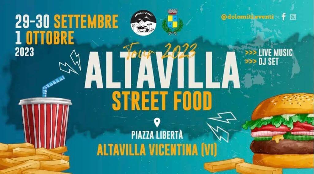 L’Amministrazione Comunale di Altavilla Vicentina, in collaborazione con Dolomiti Eventi, ha organizzato l’evento “Street Food”, una tre giorni dedicata al cibo di strada rivisitato in chiave gourmet.