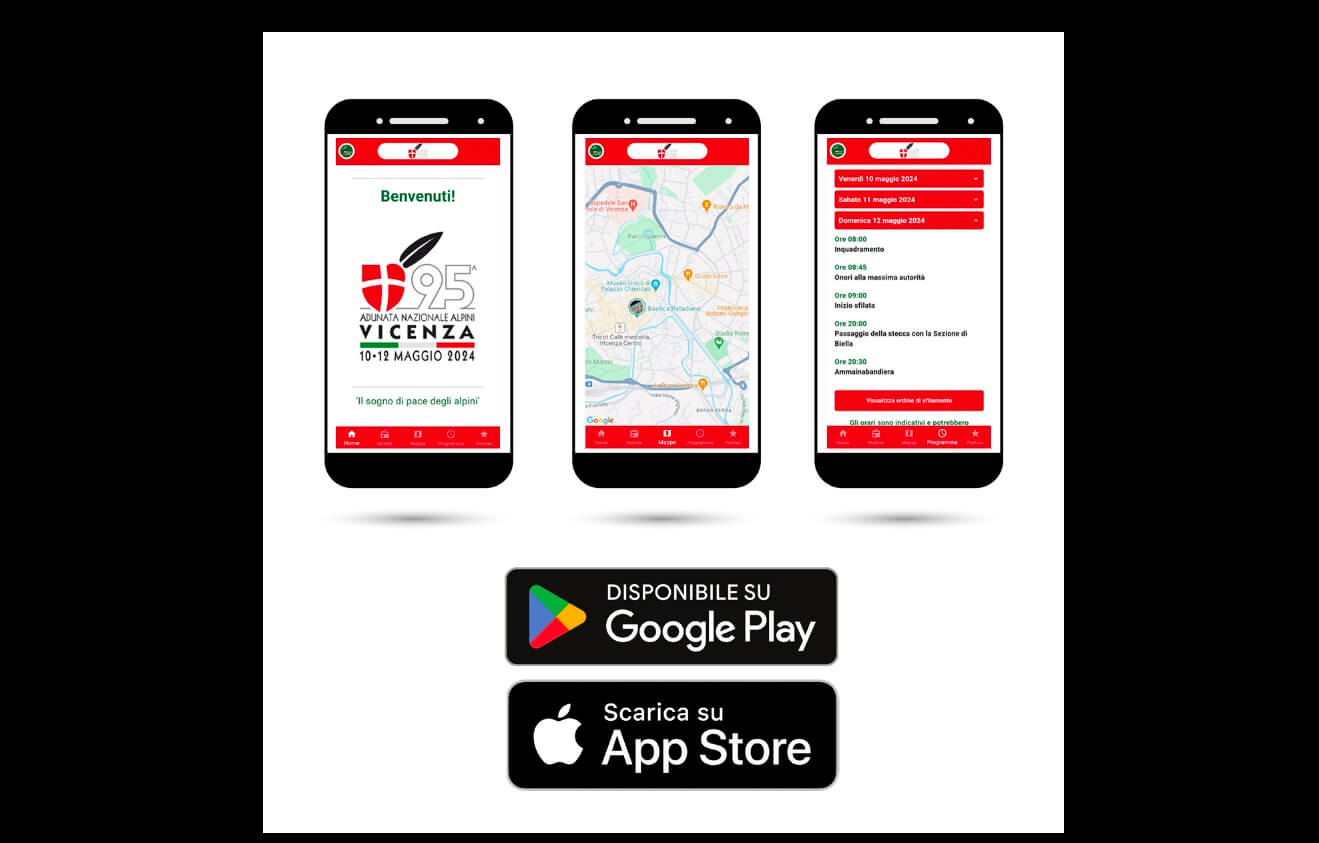 Vestita di tutti i colori sgargianti di questa 95a edizione del maxi-raduno nazionale, la nuova App per l’Adunata di Vicenza aspetta di essere scaricata sui telefonini, sia Android che Apple. E’ davvero semplice: basta andare su PlayStore per Android e su Apple Store per iPhone, cercare Alpinapp Adunate (attenzione, da non confondere con la semplice Alpin App) e installarla.