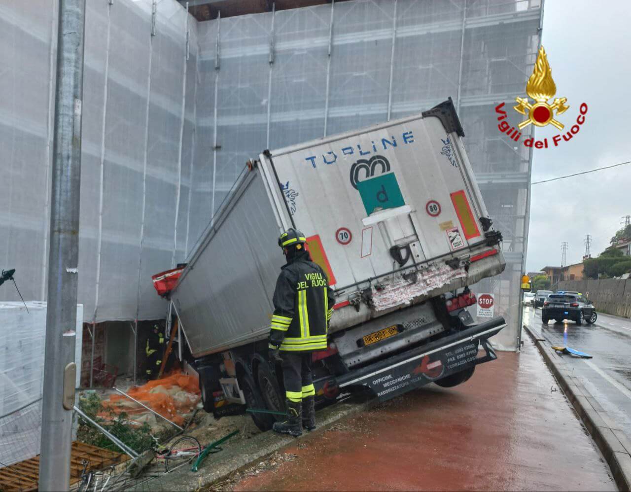 L’uscita autonoma del mezzo pesante non ha coinvolto altri veicoli, l’autista lievemente ferito è stato affidato alle cure dei soccorritori sanitari per accertamenti.