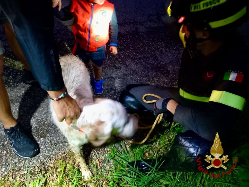 A recuperare Red, questo il nome del cane da caccia di 9 anni, ci hanno pensato ieri sera i vigili del fuoco giunti dal locale distaccamento. Dopo essersi calati nel torrente, la squadra ha recuperato l’animale per riaffidarlo alle cure del legittimo proprietario, che lo aveva smarrito domenica scorsa.