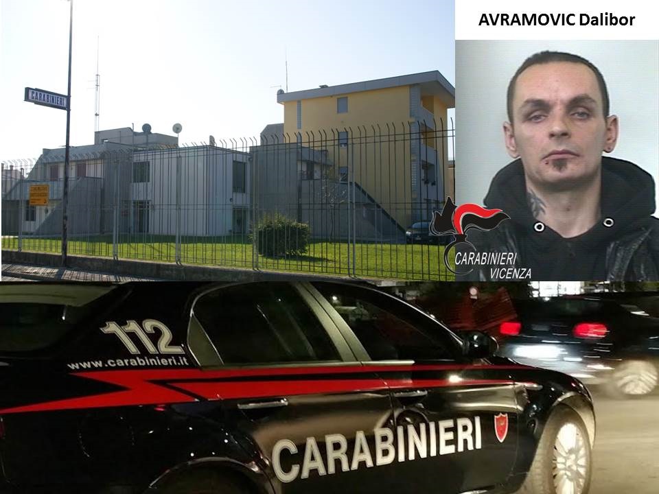 Ieri 21Febbraio 2019, dopo la conclusione dell’iter processuale ed il passaggio in giudicato della sentenza di condanna, gli stessi militari della locale Stazione, hanno ricercato, individuato ed arrestato AVRAMOVIC Dalibor, cittadino Serbo, classe 1984, domiciliato ad Arzignano, celibe, disoccupato, pregiudicato, il quale dovrà scontare la pena di 2 anni, 2 mesi e 4 giorni di reclusione, presso il carcere di Vicenza, dove è stato condotto dagli operanti.
