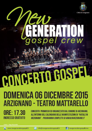 I New Generation Gospel Crew sono dunque una gospel crew, un gruppo gospel composto da 36 coristi e 4 musicisti, proiettato verso una nuova generazione musicale e con nuovo e innovativo progetto per la diffusione e la rieducazione al vero gospel, in cui canto e preghiera si fondono in un’unica travolgente emozione.