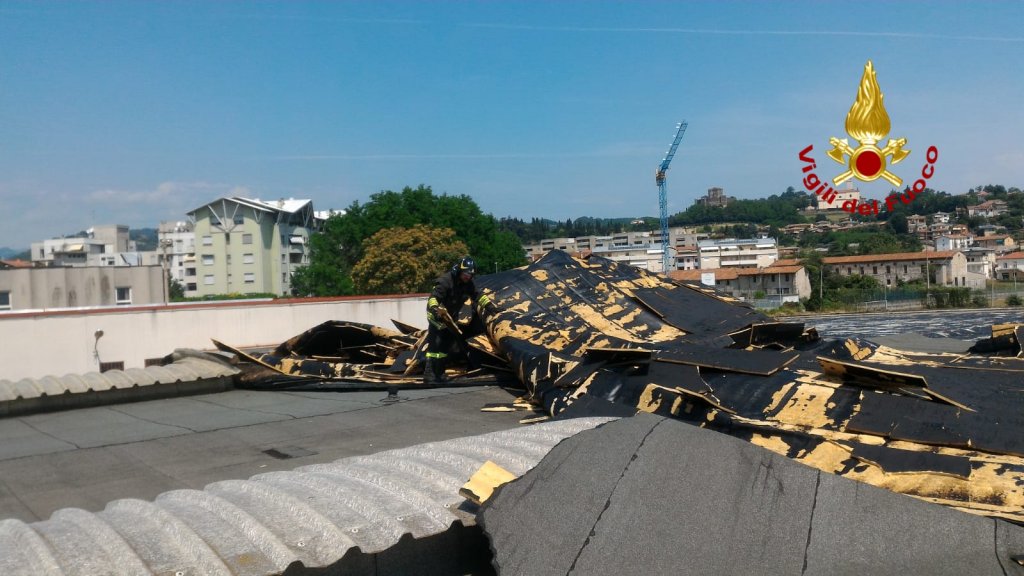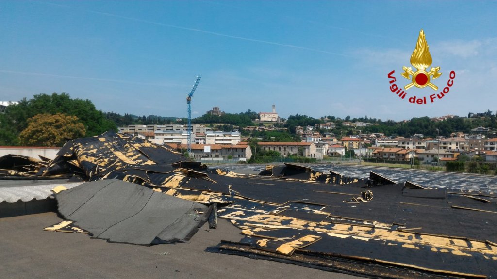 Arzignano, il maltempo scoperchia il tetto di un capannone (FOTO)