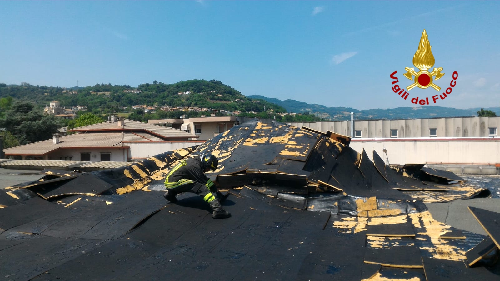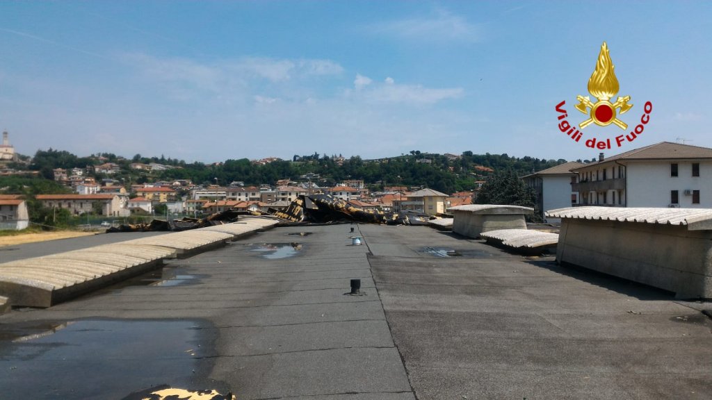 Arzignano, ecco le foto del tetto scoperchiato del capannone in via dell’Industria 23 durante il maltempo della scorsa notte: il distacco di parte della guaina del tetto ha reso necessario l’intervento dei vigili del fuoco per mettere in sicurezza edificio e area.
