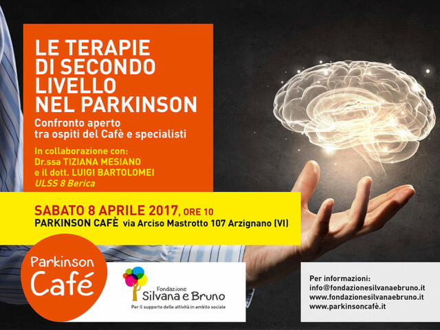 Arzignano, 4 aprile 2017 – Il consueto appuntamento di confronto tra specialisti e ospiti al Parkinson Cafè ha come tema “Le terapie di secondo livello”, in programma sabato 8 aprile ore 10, in via A. Mastrotto 107 ad Arzignano.