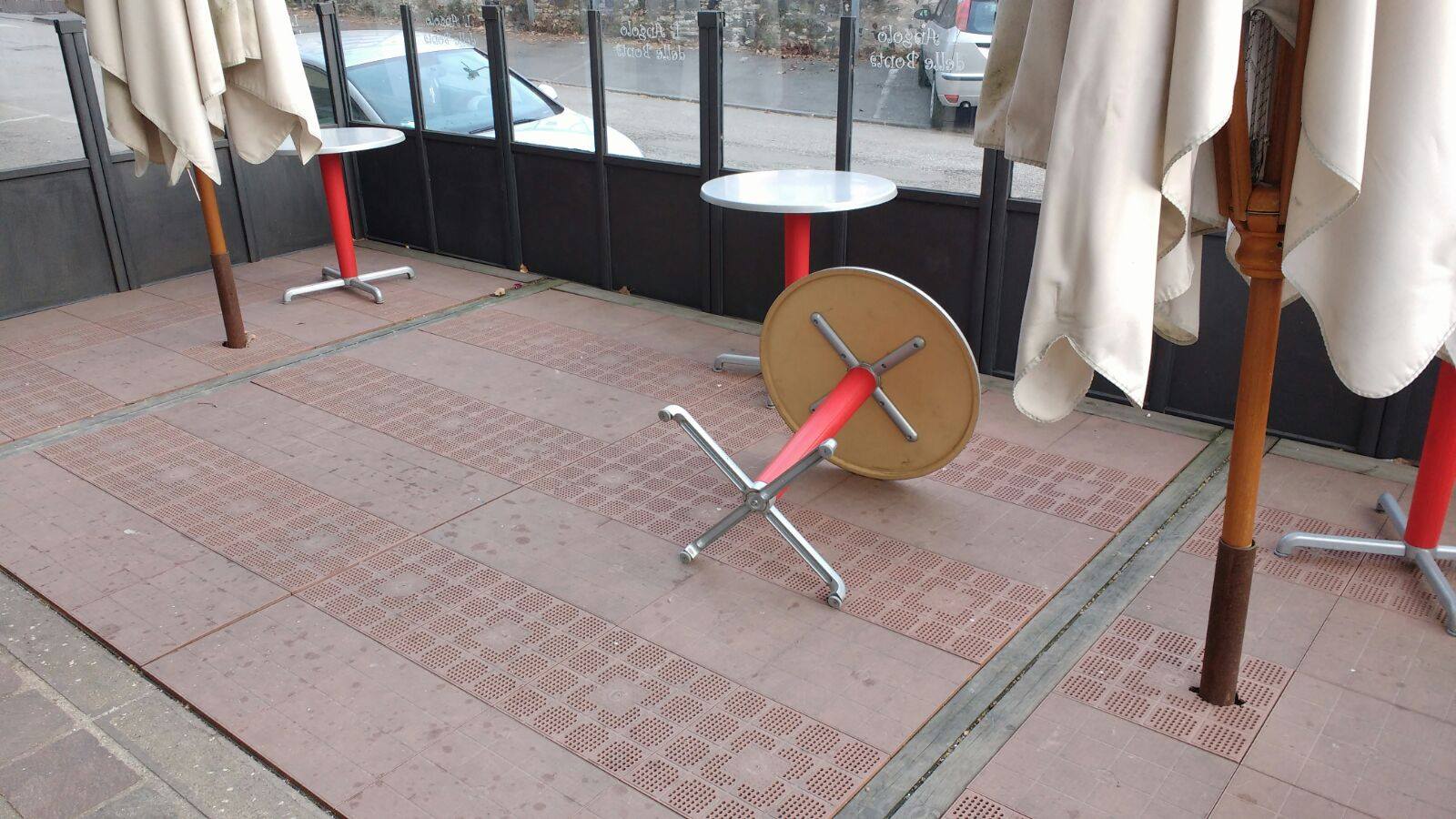Piazza Libertà, dove una colonnina per chiusura catene è stata depositata sopra i tavoli del bar tabaccheria Grifo