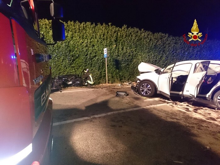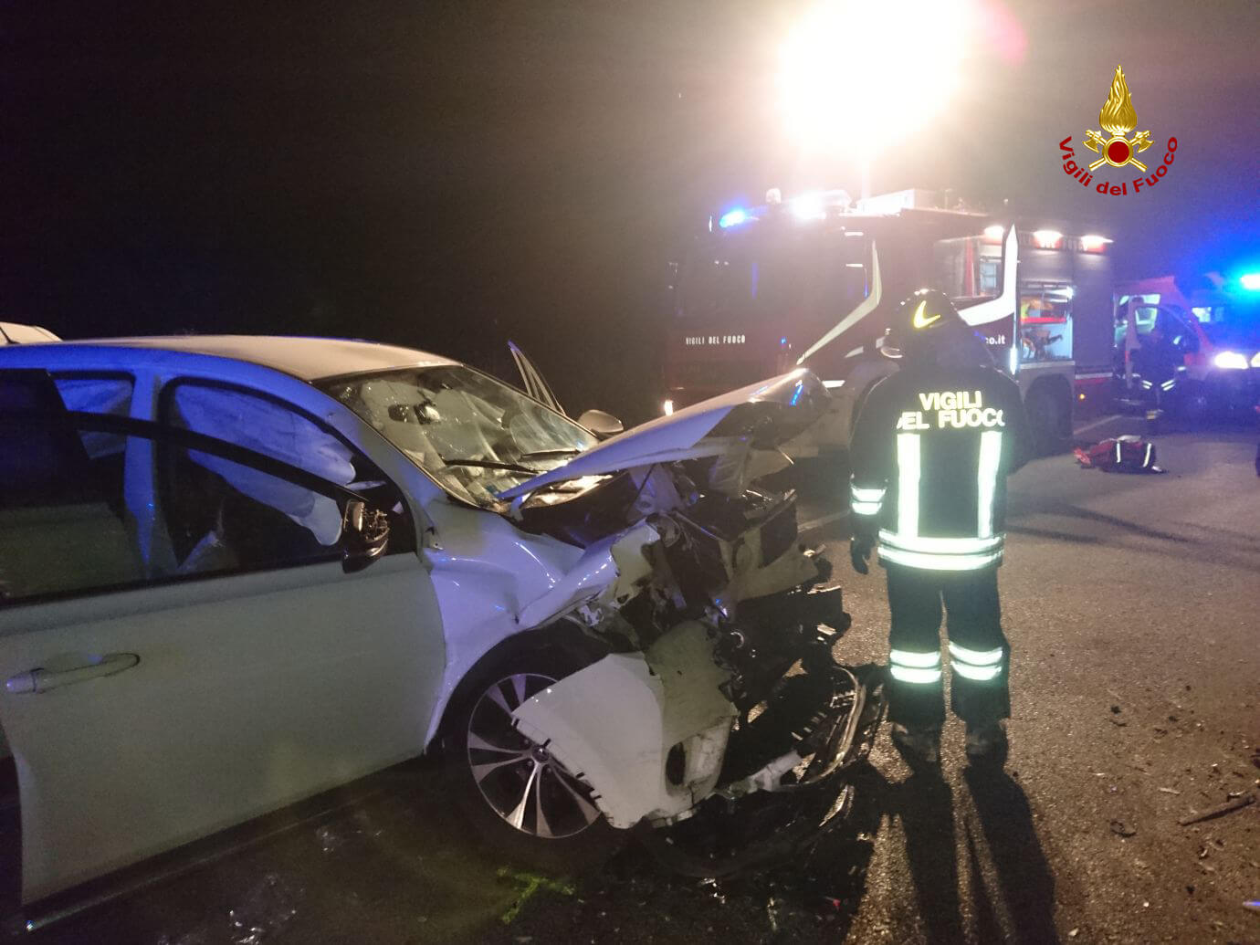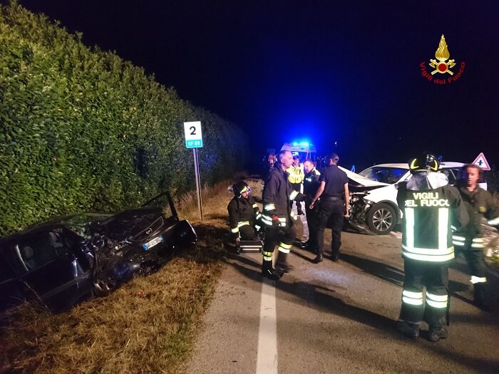 Alle ore 23.30 della scorsa notte, i vigili del fuoco sono intervenuti per lo scontro frontale tra due autovetture lungo la SP 89 al km 2 tra Tezze di Arzignano e Trissino: cinque i feriti. I pompieri arrivati per primi sul luogo del sinistro hanno messo in sicurezza i mezzi e soccorso le due coppie di Arzignano, che viaggiavano a bordo della Toyota Raw e il conducente ghanese dell’Opel Zaffira (A.J., 51enne residente a Trissino) finito in un piccolo fossato a bordo strada. Una delle due auto avrebbe invaso la corsia opposta. Tutti i feriti sono stati successivamente assistiti dal personale del suem 118 e portati neglii ospedali di Montecchio e Vicenza. La polizia locale e i carabinieri hanno effettuato i rilievi per ricostruire la dinamica del sinistro. L’intervento di soccorso dei vigili del fuoco è terminato dopo le ore 2.