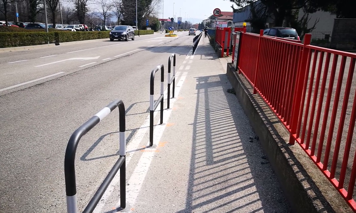 L’Amministrazione ha quindi provveduto, nelle scorse settimane a realizzare un vialetto pedonale protetto installando idonei dissuasori rigidi (archetti) lungo il lato di viale Vicenza dove l’area pedonale era delimitata semplicemente da segnaletica a terra.