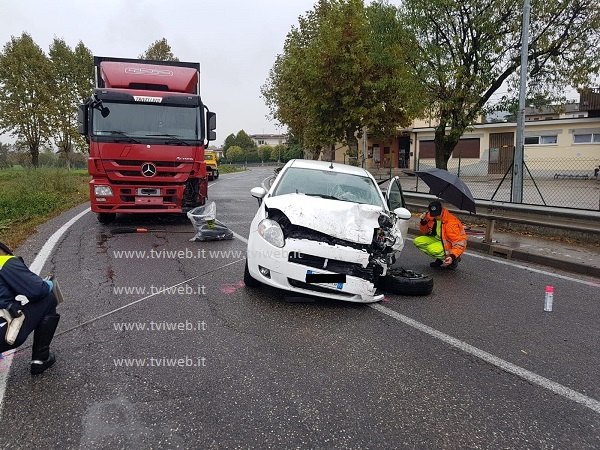 Grave incidente stamane poco prima delle 10 sulla strada provinciale delle Tezze ad Arzignano in località Costo. Una Fiat Punto condotta da L.V., donna di 36 anni residente a Trissino, per cause in corso di accertamento ha invaso la corsia opposta di marcia dalla quale proveniva un autocarro Mercedes diproprietà di una ditta di Arzignano, condotto da L.B.., uomo di 69 anni residente ad Arzignano. Violentissimo l’impatto e i mezzi hanno occupato entrambe le corsie di marcia. La donna è stata condotta in serie condizioni all’ospedale di Arzignano.