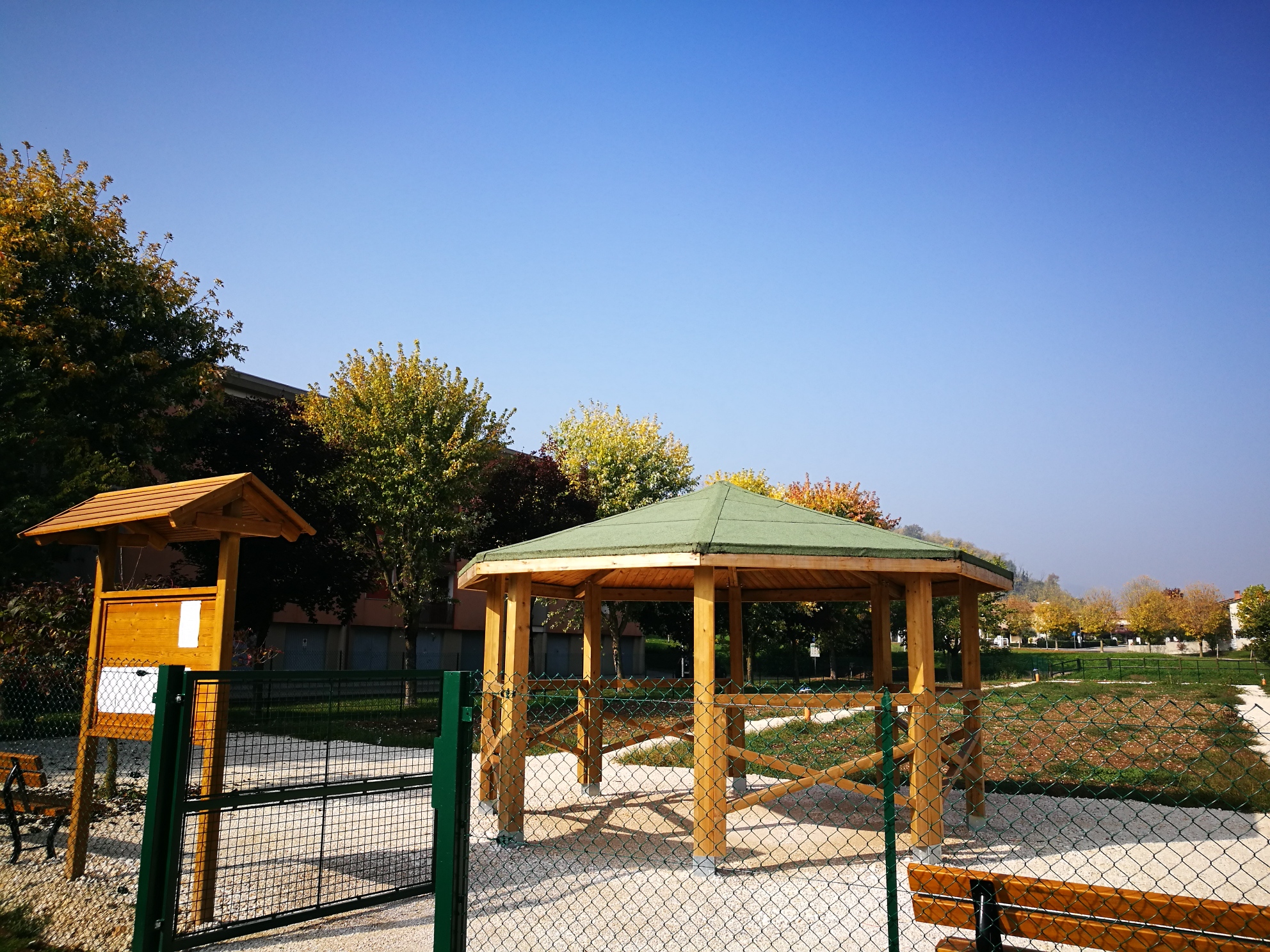Il lavoro è stato realizzato, con l’installazione di un impianto idraulico per portare l’acqua a ciascun orto, la creazione di vialetti e di un cortile comune in ghiaino, un gazebo ottagonale in legno per fornire una tettoia di protezione dalle intemperie e per eventuali attività comuni, due panchine per la sosta e una bacheca per gli avvisi.