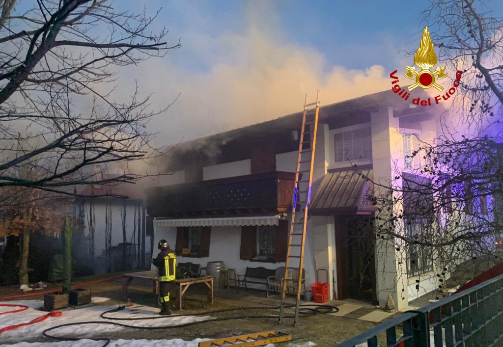 Poco dopo le 6:30 di venerdì, i vigili del fuoco sono intervenuti in via Prestinari ad Asiago per l’incendio del tetto di un’abitazione disposta su due livelli: nessuna persona è rimasta ferita. I pompieri subito accorsi dal locale distaccamento e successivamente da Schio e Bassano del Grappa con 3 autopompe, 2 autobotti, l’autoscala e 15 operatori, hanno iniziato le operazioni d spegnimento riuscendo a sezionare la copertura ed evitare un incendio generalizzato. Le fiamme hanno intaccato esternamente un poggiolo in legno andato completamente distrutto e parte del sottotetto in legno coperto da una guaina metallica. Sono ora in corso le operazioni di controllo di tutte le travature in legno per escludere eventuali focolai. Le cause dell’incendio sono al vaglio dei tecnici dei vigili del fuoco. Le operazioni dei vigili del fuoco di completo spegnimento e bonifica termineranno presumibilmente nel primo pomeriggio.