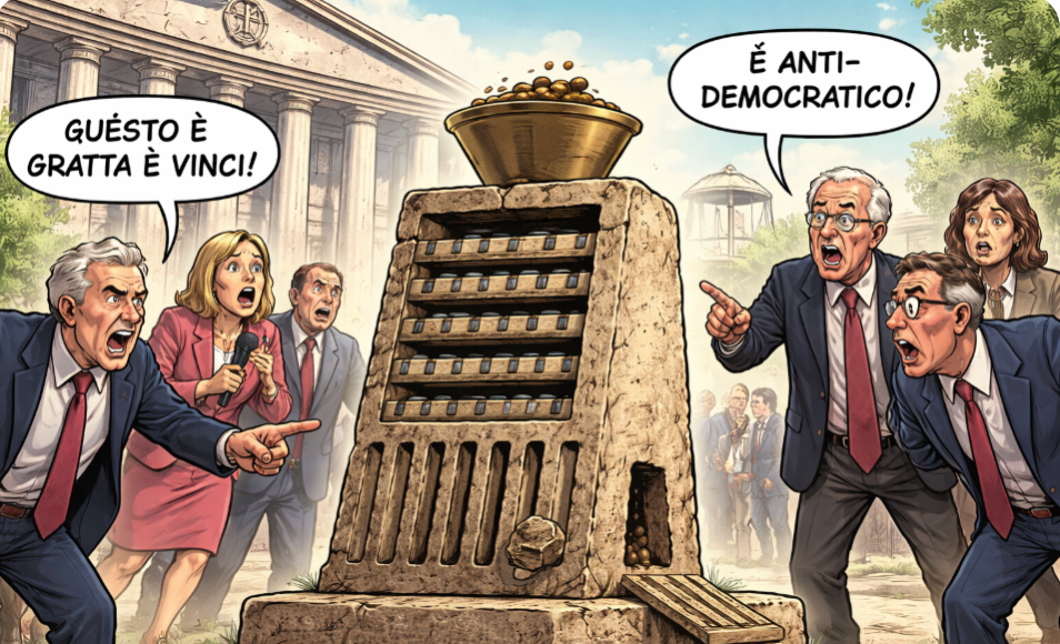 Tra catastrofismi dell’ultima ora e citazioni inventate, siamo arrivati a quella che a mio avviso è la madre di tutte le “bubole”: la crociata contro l’estrazione a sorte.
