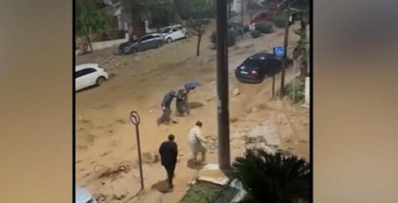 Le strade di Atene si sono trasformate in veri e propri torrenti di fango, trascinando via quasi tutto ciò che incontravano sul loro cammino, comprese le auto. Nel video pubblicato oggi, si vede una donna che cercava di attraversare una via rischiando di essere travolta, salvata all’ultimo momento grazie al coraggio di alcuni residenti.
