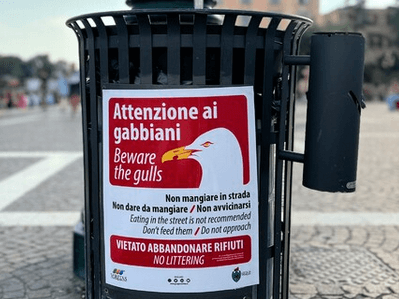 “Attenzione ai gabbiani”. E’ l’invito che da ieri compare su centinaia di manifesti adesivi applicati sui cestini dei rifiuti a Venezia, per mettere in allerta residenti e turisti sul rischio – sempre più frequente – di attacchi dall’altto da parte di questi uccelli, e chiedere di non abbandonare rifiuti, soprattutto cibo, a terra.
