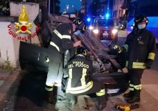 Schianto in viale Crispi: auto ribaltata e due feriti