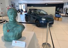 Busto di Pigafetta a Roma con una Fiat 500 brandizzata