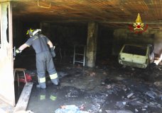 Incendio in garage: auto bruciata e proprietario ustionato (foto e video)