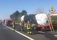 A fuoco rimorchio con cisterna in autostrada A4 (VIDEO)