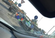 Camion carico di bottiglie di vetro si ribalta: traffico in tilt