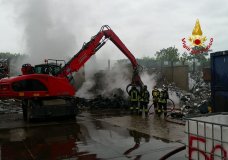 VICENZA – Fuoco in deposito materiale ferroso (VIDEO)