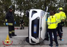 Veneto – Auto si rovescia su un fianco: un ferito