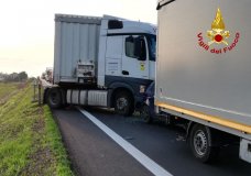 Scontro fra 5 mezzi pesanti: un ferito e strada chiusa in SR 53