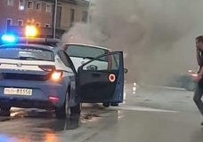 Rimane intrappolato nell’auto in fiamme: salvato dai poliziotti