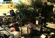 Batteria di e-bike si surriscalda, negozio di bici a fuoco nella notte