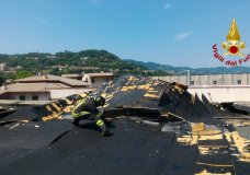Arzignano, il maltempo scoperchia il tetto di un capannone (FOTO)