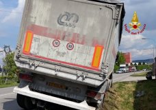 MONTEBELLO – Camion carico di ghiaia fuori strada, traffico bloccato