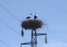 Nido di cicogne sul traliccio, messo in sicurezza dai tecnici elettrici