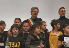 Gare Robocup, l’assessore Tolio con gli alunni della scuola Zecchetto terza classificata