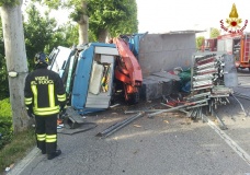SAREGO – Caos in SP 500, camion si schianta e si ribalta