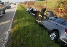 Scontro tra 2 auto: entrambe finiscono nel fossato, estratto un uomo (FOTO)