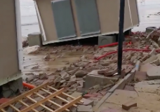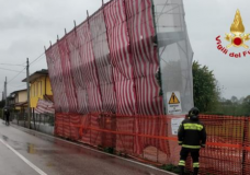 Impalcatura pericolante finisce sui fili elettrici per il forte vento