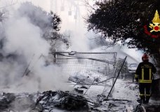 SANDRIGO – In fiamme il campo rom, intervengono i pompieri