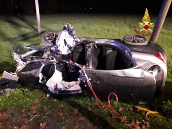 La strage, l’ennesima del sabato sera sulle strade venete, è avvenuta sabato notte in provincia di Padova, a San Pietro in Gu. E’ un’auto a finire fuori strada, una Fiat Tipo nuova. Solo le 2.30, a bordo ci sono 5 ragazzi. Per cause ancora in corso di definizione, l’auto è prima andata a sbattere contro un platano, poi in un fossato con più di mezzo metro di acqua. Il bilancio è drammatico: 4 feriti e una ragazza di appena 18 anni deceduta sul posto, la 18enne Greta Luison, nata a Vicenza ma residente a San Piero in Gu. Sono stati i pompieri di Cittadella ad estrarre la povera ragazza dall’abitacolo che, nonostante i tentativi di rianimazione sul posto, non ce l’ha fatta. Estratto anche l’autista, rimasto incastrato nelle lamiere assieme a un altro passeggero che viaggiava sui sedili posteriori, mentre gli altri due sono riusciti a uscire dall’auto da soli. Il conducente, O.T., di 23 anni, all’ospedale per trauma cranico, è stato deferito dai carabinieri in stato di libertà.