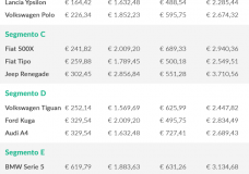 L’indagine ha preso in esame le tre vetture più vendute per ogni segmento di grandezza, in base a dati sulle nuove immatricolazioni rilevati ad aprile 2018 dall’Unrae, l’Unione nazionale rappresentanti autoveicoli esteri. Cominciando dal segmento A, ad esempio (che comprende i veicoli di piccole dimensioni), le due auto in assoluto più scelte sono due Fiat. Prima su tutte svetta la Panda: per guidarla occorrono almeno 2.263 euro l’anno. A seguire la Cinquecento, che ci si può permettere con 2.198 euro ogni dodici mesi. Al terzo posto si colloca la Volkswagen up!: più economica rispetto alle prime due (2.148 euro l’anno), ma evidentemente meno attraente delle altre due auto agli occhi degli italiani.