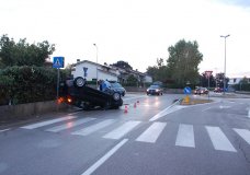 A seguito della collisione, la Fiat Punto si ribaltava. Fortunamente il conducente riportava solo lesioni lievi.