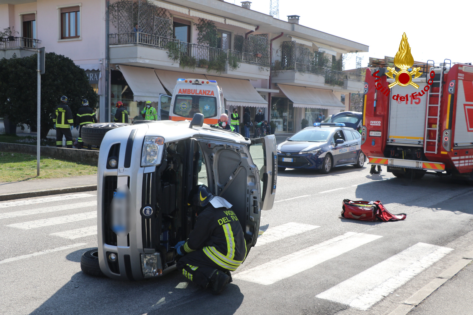 Alle 11 circa, i vigili del fuoco sono intervenuti in Via dei Combattenti incrocio con Via degli Alpini a Sovizzo per il rovesciamento di un’auto su un fianco, dopo la perdita di controllo della conducente rimasta ferita. I pompieri arrivati da Vicenza, hanno messo in sicurezza l’auto ed estratto l’anziana rimasta bloccata al posto guida e prestato soccorso fino all’arrivo del personale sanitario. L’anziana è stata stabilizzata dagli operatori del SUEM e trasferita in pronto soccorso. Sul posto la polizia locale per capire la dinamica del sinistro. Le operazioni di soccorso dei vigili del fuoco sono terminate dopo circa un’ora.