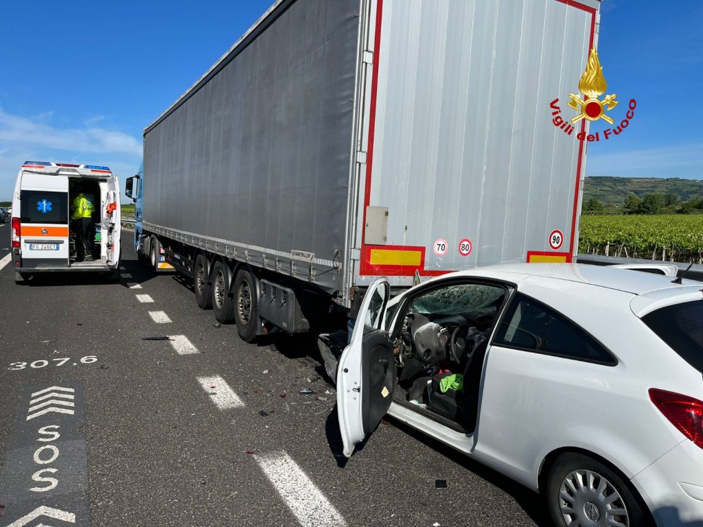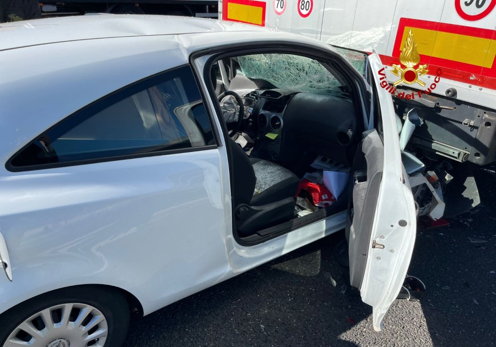 Auto tampona camion in A4: conducente miracolato