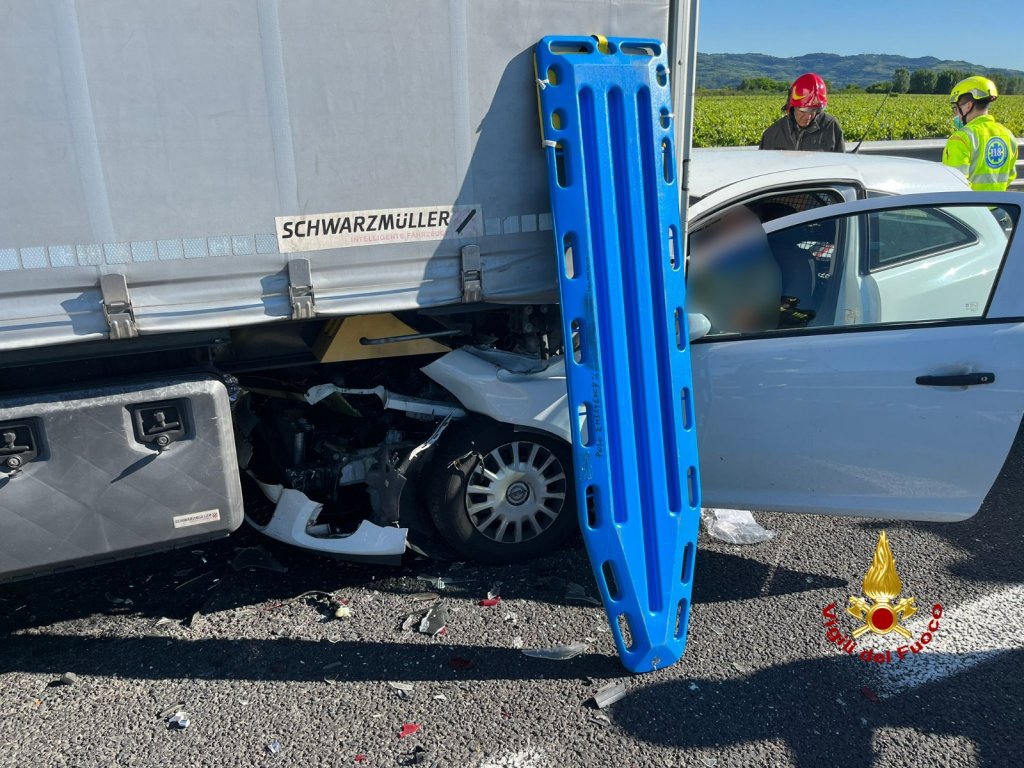 Alle 8:30, di mercoledì, i vigili del fuoco sono intervenuti in autostrada A4, tra gli svincoli di Montebello Vicentino e Soave in direzione Milano, al km 307 + 600, per il tamponamento di un autoarticolato da parte di un’auto il cui conducente è rimasto ferito. I pompieri arrivati da Lonigo e Caldiero, hanno messo in sicurezza il mezzo ed estratto dall’Opel Corsa finita contro la parte posteriore del mezzo pesante l’automobilista. Il ferito è stato preso in cura dal personale sanitario e trasferito in ospedale. Sul posto la polstrada e il personale ausiliario di autostrada. Le operazioni di soccorso sono terminate alle 10 circa.