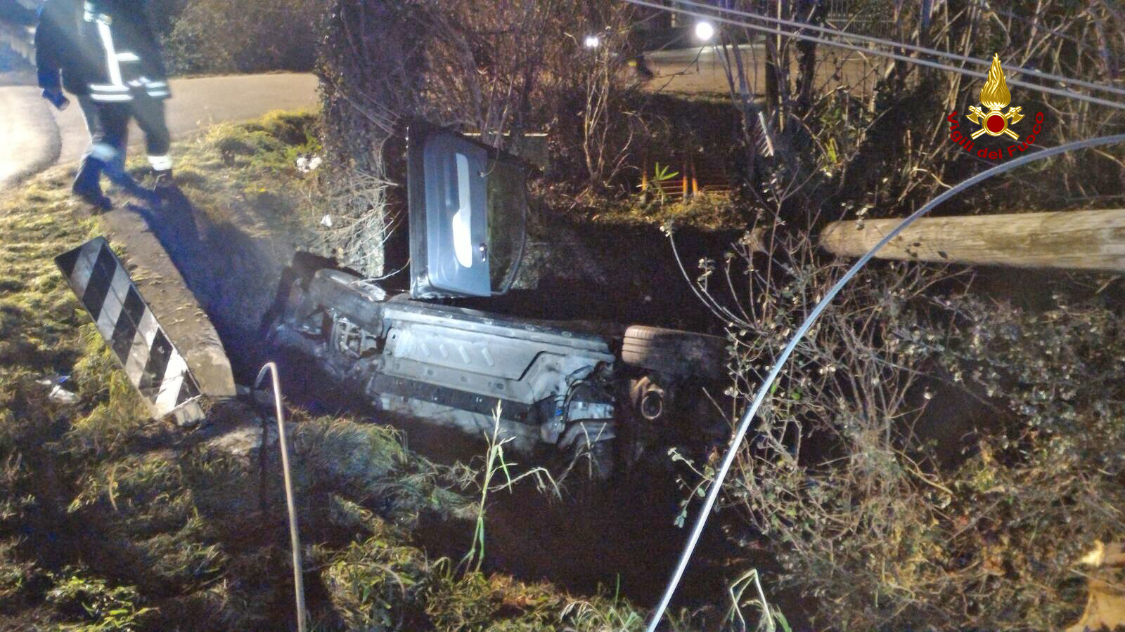 POZZOLEONE. La notte scorsa alle ore 23.00 i vigili del fuoco sono intervenuti lungo la SP52 a Scaldaferro di Pozzoleone per la fuoriuscita di un’auto rovesciatasi su un fianco in un piccolo canale affianco la strada dopo aver abbattuto un palo telefonico: ferite due persone. La squadra di Bassano ha messo in sicurezza la Fiat 500 ed estratto la donna che si trovava ancora all’interno dell’abitacolo immerso in 30 cm d’acqua, mentre l’uomo era riuscito a venire fuori autonomamente. La coppia di origine statunitense è stata assistita dal personale del Suem 118 e portati in ospedale. Sul posto la polizia stradale di Schio. Le operazioni di soccorso dei vigili del fuoco sono terminate dopo circa due ore dopo il recupero dell’autovettura.