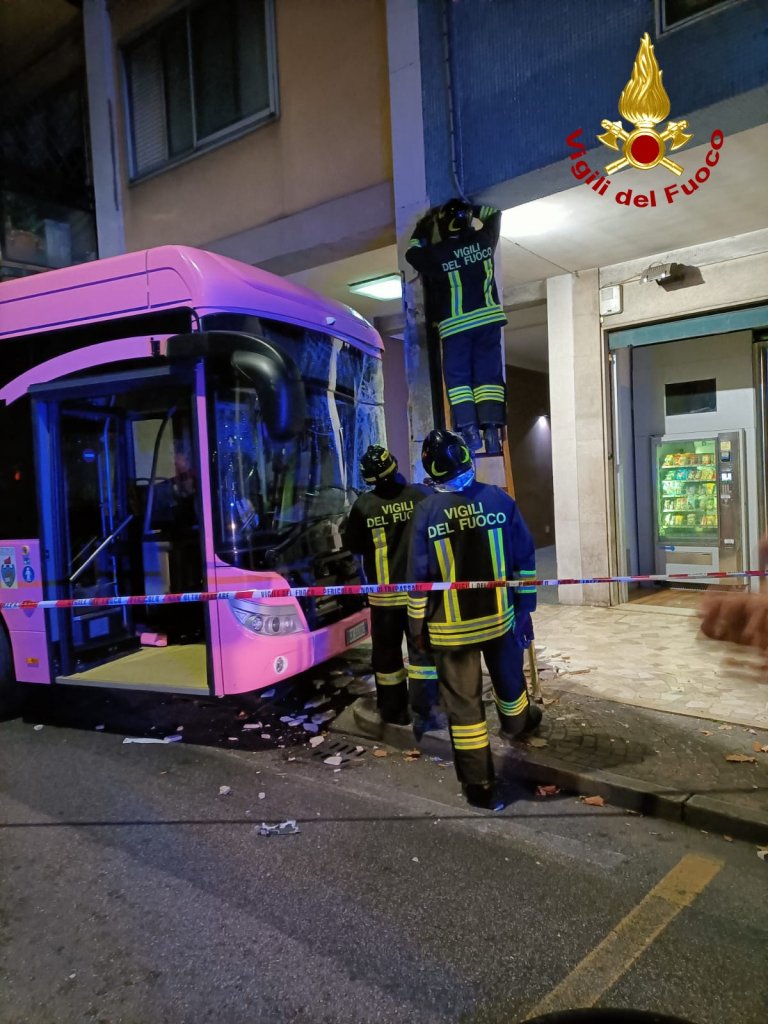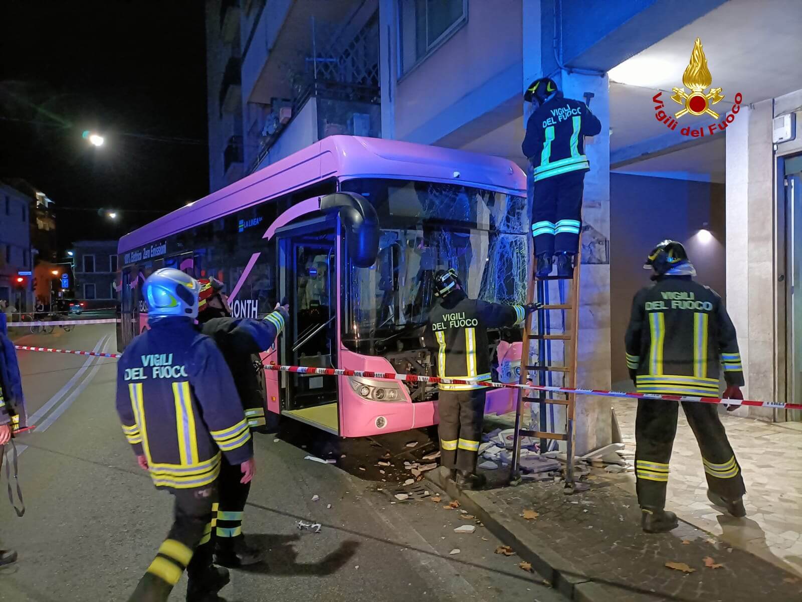 Alle 21:10, di sabato, i vigili del fuoco sono intervenuti in via Carducci a Mestre per un bus del trasporto urbano finito contro un pilastro del sottoportico di un caseggiato per un probabile malore dell’autista: 14 feriti. I vigili del fuoco intervenuti con due squadre e il funzionario di guardia, hanno messo in sicurezza il mezzo e coadiuvato i soccorsi del personale sanitario del SUEM intervenuti con diverse ambulanze e l’auto medica, che ha assistito i passeggeri molti dei quali contusi. Tutte le persone coinvolte, tutti coscienti, sono stati traferiti negli ospedali di Mestre, Dolo e Mirano per le cure e gli accertamenti. Sul posto la polizia di stato, la polizia locale e i carabinieri. Ancora in corso le operazioni di soccorso dei vigili del fuoco per la rimozione del bus e il controllo di staticità del pilastro.